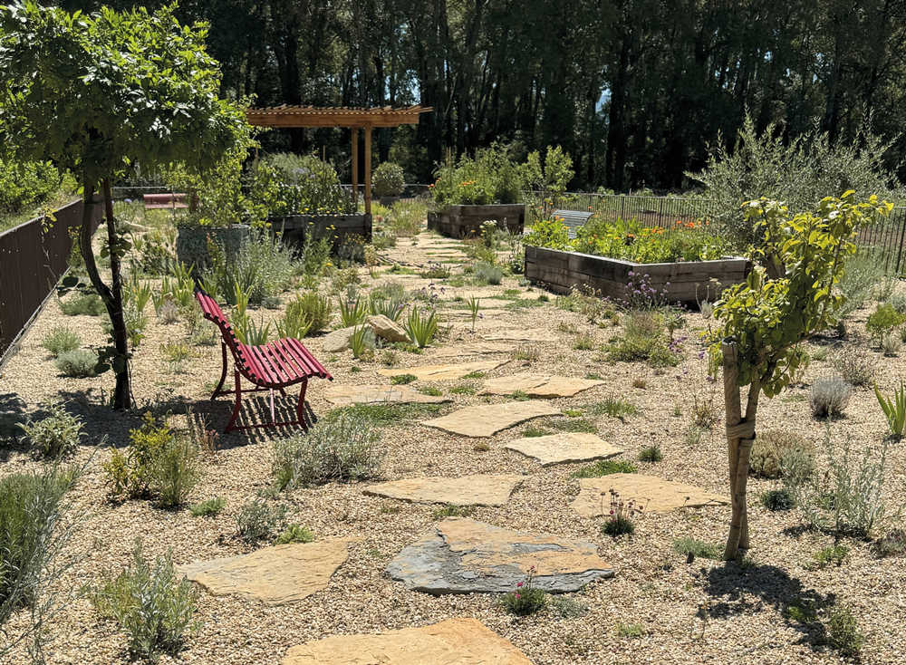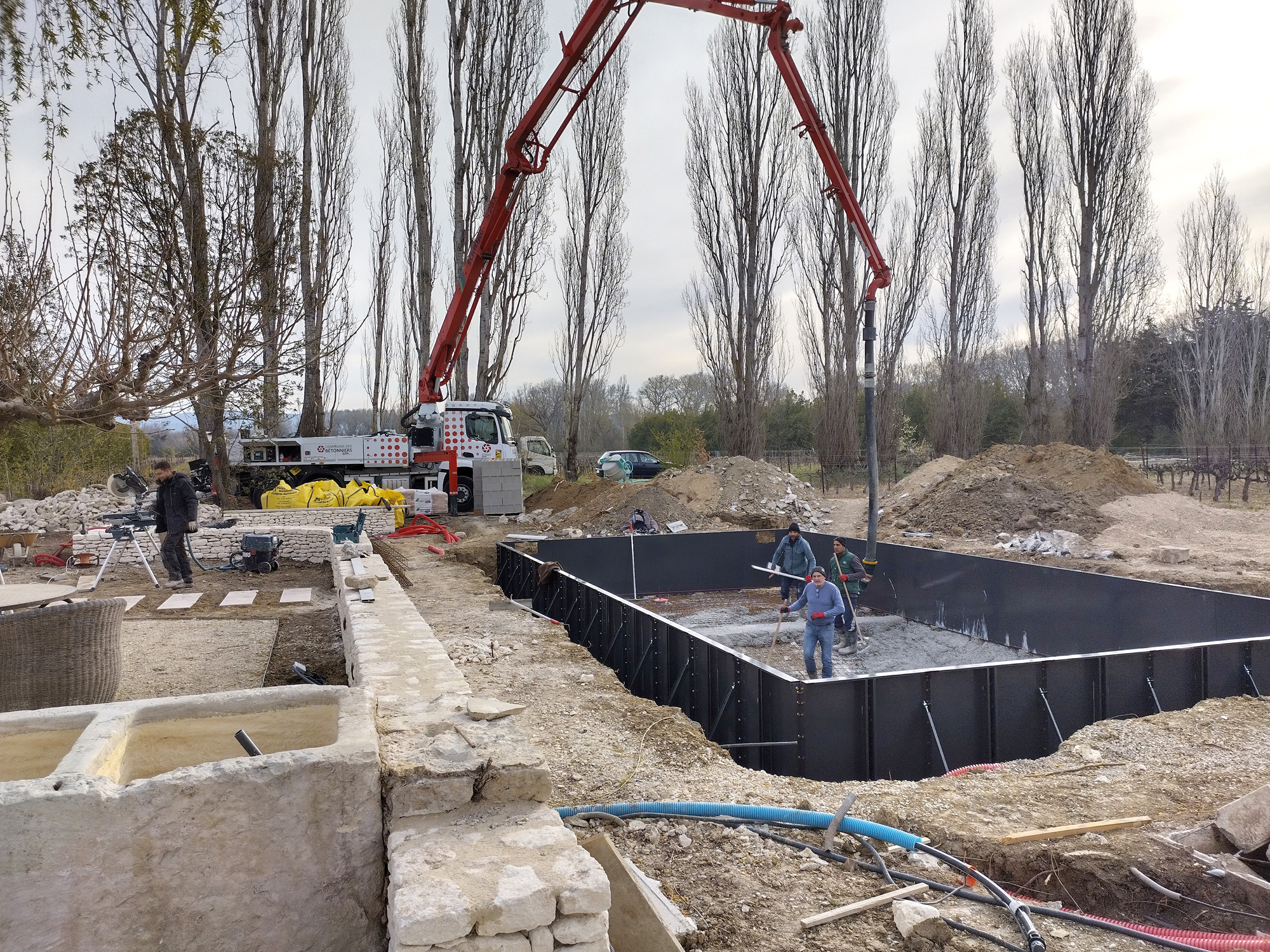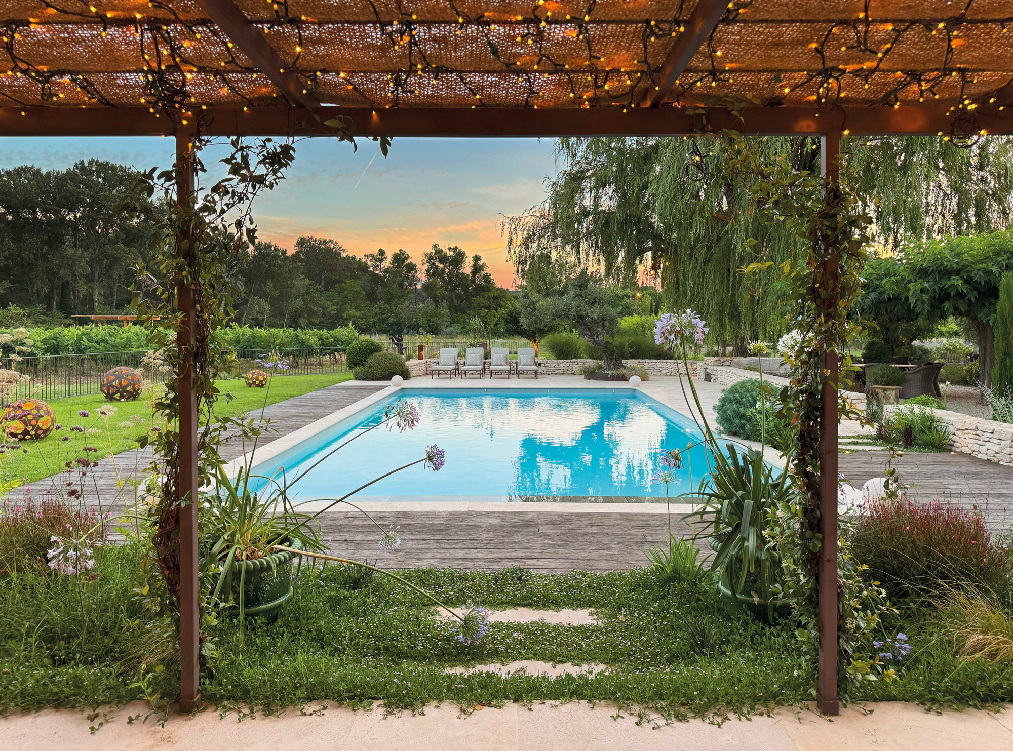 La planification a nécessité plusieurs itérations de conception, notamment via des maquettes 3D et des échanges réguliers avec les clients. “Ils nous donnaient des grandes lignes, des idées en photos, et on leur présentait à chaque changement un film en 3D pour qu'ils puissent se projeter. Il nous a fallu 6 à 8 mois de conception, 5 ou 6 propositions et améliorations des plans alors même que certains travaux débutaient. Une forme de jardin évolutif”, explique Olivier Mosnier. Côté réalisation, elle s’est étalée sur plus d’un an, en différentes phases de travaux. Le chantier a impliqué plusieurs corps de métier : l’entreprise de paysage Accent du Sud pour la majorité des travaux, des artisans spécialisés pour la pierre, la cuisine d’été et la piscine et une entreprise spécialisée pour la conception de l’éclairage d’extérieur. L’architecte-paysagiste, maître d’œuvres des extérieurs, s’en souvient : “La coactivité n’a pas toujours été évidente puisque les entreprises ne se connaissaient pas toutes. Finalement, le projet s’est bien déroulé. Il nous a tout de même fallu bien orchestrer tout le monde !” D’autre part, la sélection des matériaux a été méticuleuse pour favoriser l’authenticité et l’intégration paysagère. “Nous avons chiné, en compagnie des clients, dans tout le Lubéron et jusqu'à Carpentras pour trouver des éléments anciens qui s'intègrent parfaitement à l'esprit du projet. Pierres, éviers, fontaines, ferronneries… On a bien couru pour trouver ces trésors !”