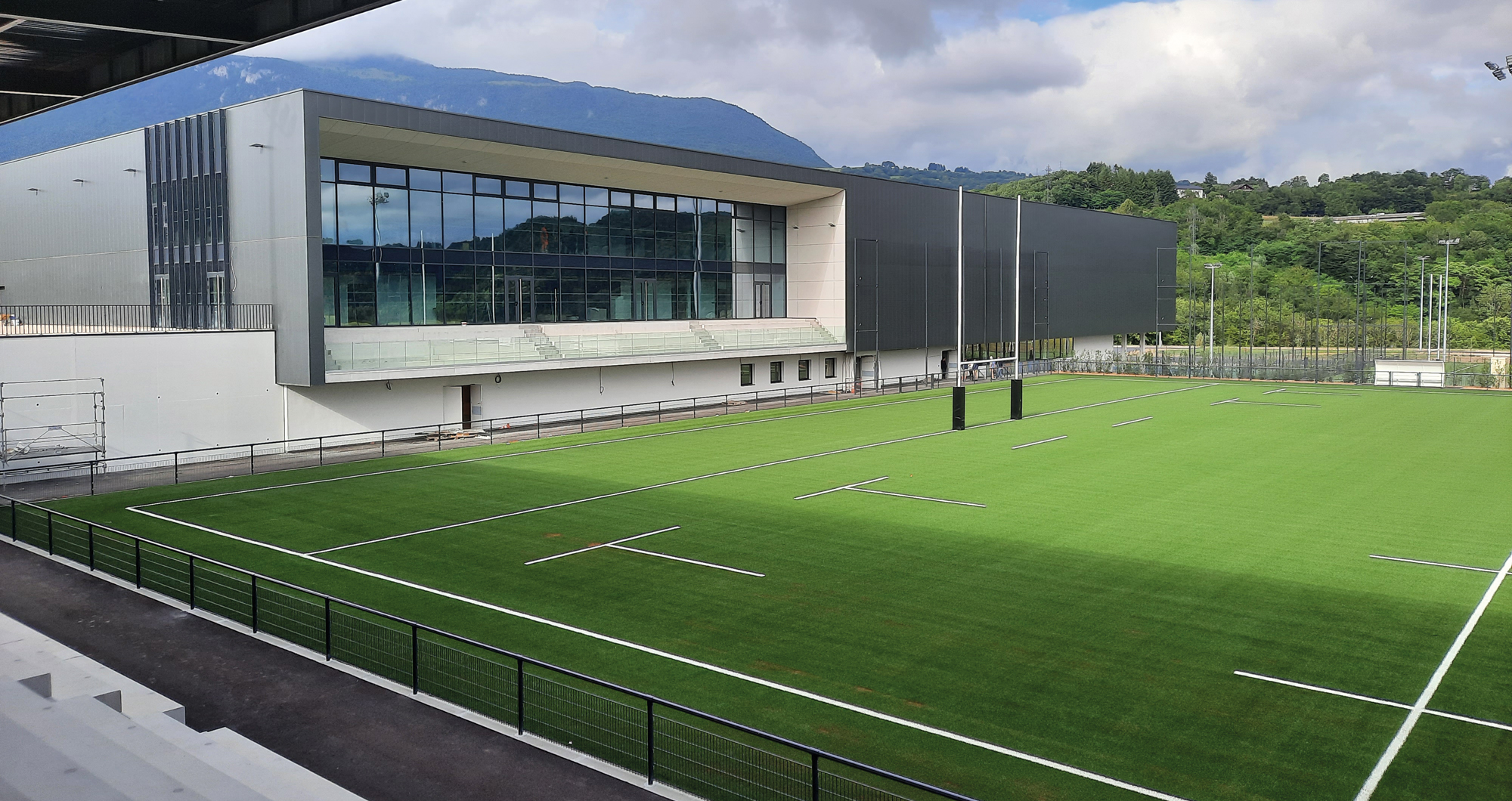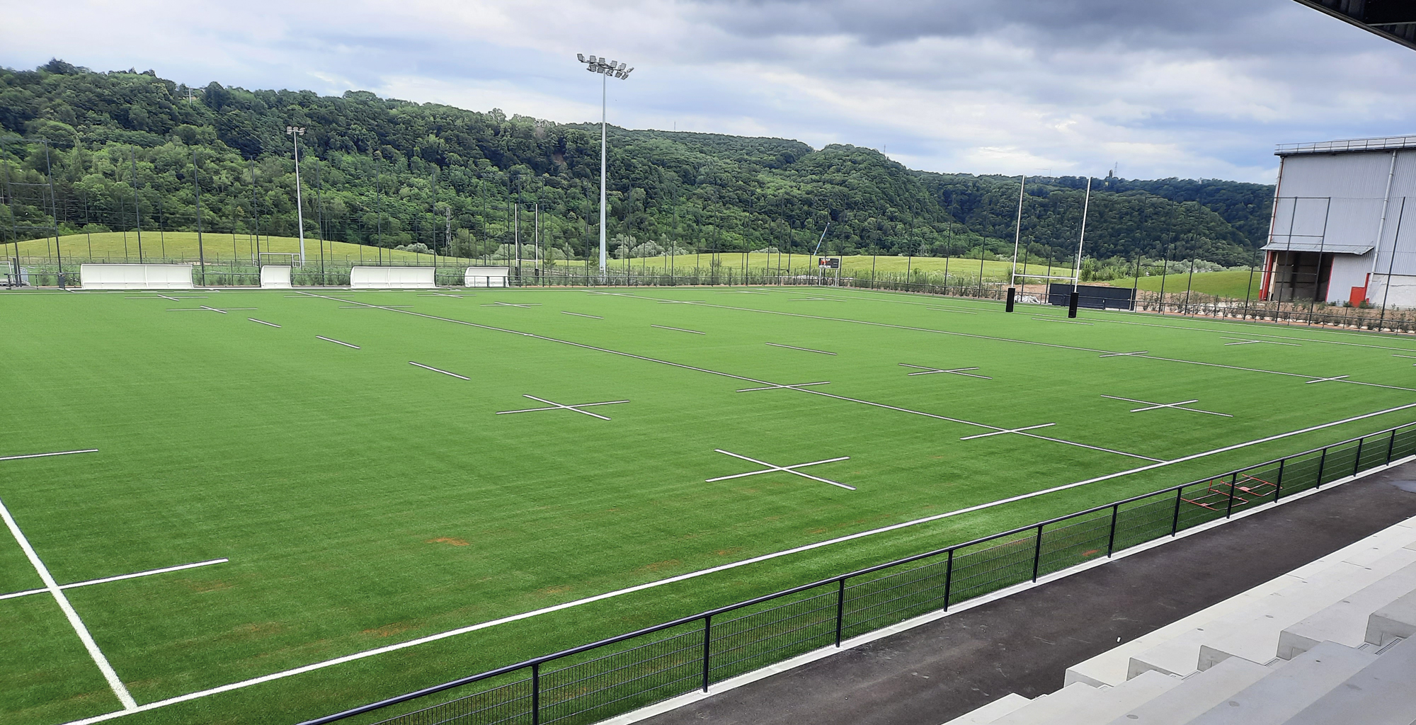 Enfin, le bâtiment abrite les installations pour le club de rugby (cinq vestiaires, un club-house de 250 m², des bureaux et un local de stockage) mais également une salle de musculation (mutualisée entre les clubs), un espace de convivialité dédié à l’événementiel (350 m²) et l’ensemble des locaux connexes (sanitaires, locaux techniques et espaces de circulation).