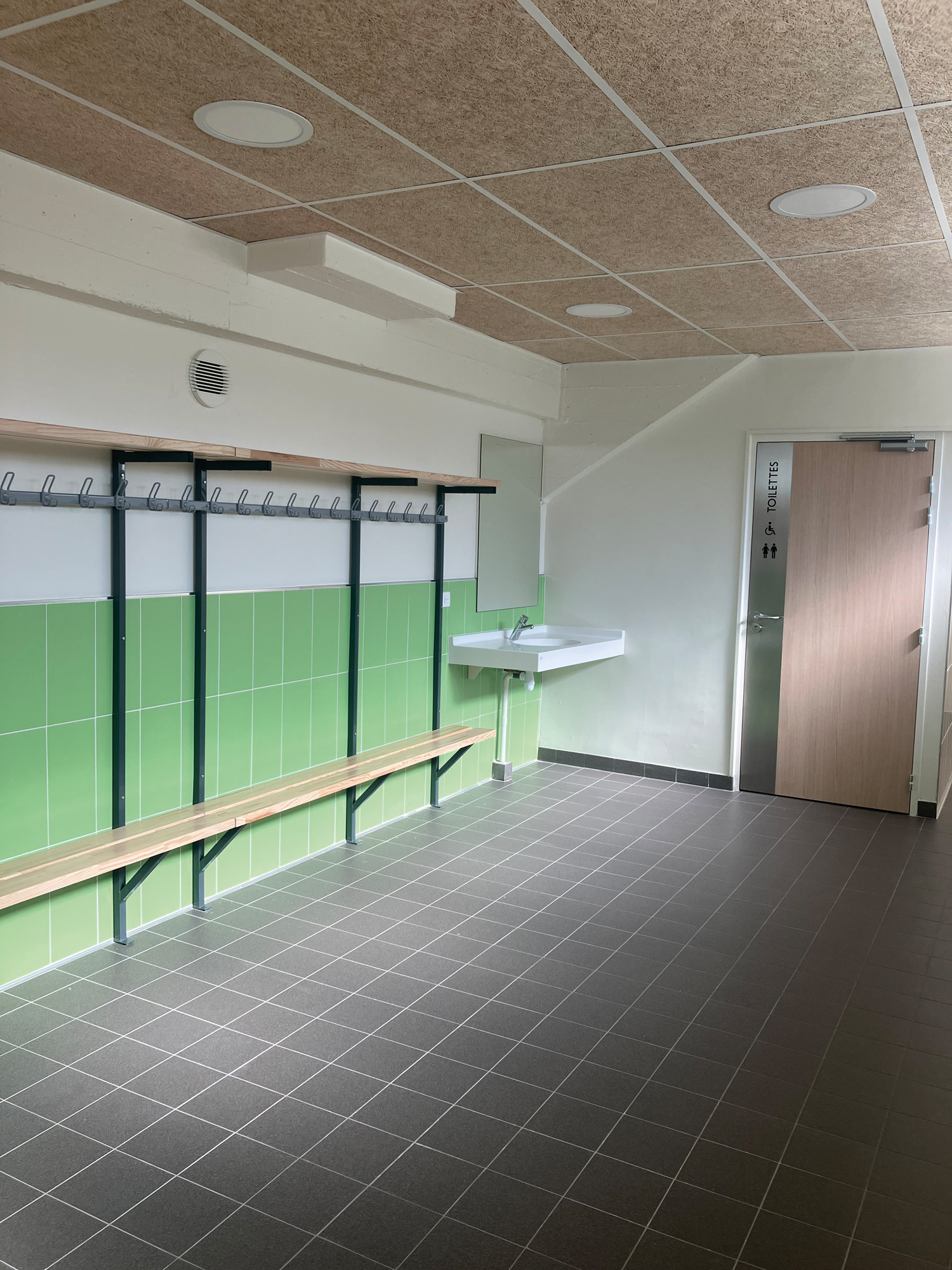 Parmi les ajustements intérieurs des espaces communs, le nombre de vestiaires (arbitres et joueurs) a été augmenté pour répondre aux attentes du club USMO Basket et permettre au gymnase d’être homologué pour les compétitions de haut niveau.