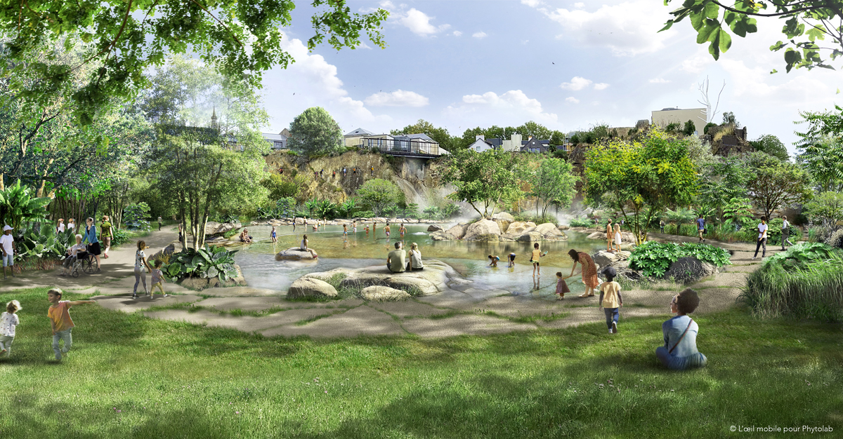 La seconde tranche de ce projet sera livrée à l’automne 2025 (budget global : 5 144 000 €) et doublera la surface du jardin (désimperméabilisation sur 1,2 ha ; 14 000 m² de nouveaux espaces verts). Au programme : le marais aux allures de mangrove, des petits boisements composés autour des arbres existants conservés (150 conservés, 280 plantés pour un total de 542 arbres), un verger exotique (agrumes, avocats, grenades, goyaves, kakis…) et une grande pièce d’eau ouverte à la baignade (700 m² de surface ; 40 cm de profondeur). “Nous sommes actuellement en pleine phase d’études, avec de réels enjeux liés à la qualité de l’eau via une filtration adaptée aux besoins de la faune et de la flore mais aussi aux normes sanitaires. Nous souhaitons conserver un espace naturel viable, tout en offrant le confort de la baignade, ce qui représente un défi de taille !”, met en lumière Thomas Grimaud. Sans oublier la future via ferrata qui complètera des voies d’escalades déjà ouvertes sur les parois de la falaise. “La seconde phase de travaux porte essentiellement sur des aménagements ludiques pour des usages plus dynamiques”, complète le responsable. De nouveaux espaces qui attireront toujours plus de publics sur ce jardin déjà très apprécié (250 000 visites / an selon lesbornes Eco-compteur installées).