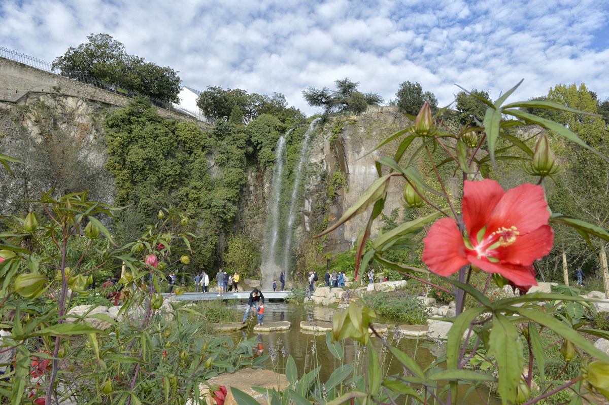 La falaise exposée plein sud constitue une véritable barrière de roche qui protège les visiteurs du vent et crée un climat plus doux (-4°C en moyenne). Isolés de la pression urbaine, les touristes peuvent profiter de la fraîcheur apportée par l’omniprésence de l’eau dans l’enceinte naturelle. En effet, le système hydraulique en circuit fermé conçu par la société locale Arrosage system, avec ses trois déversoirs pour la cascade et avec son automate électronique pour la brumisation de l’étang (500 m3), possède plusieurs avantages : réduction des nuisances sonores liées à la circulation routière aux alentours, humidification du jardin nécessaire au développement des plantes remarquables, telles que les fougères arborescentes, et reconstitution d’un lieu de repos pour la faune locale (oiseaux aquatiques, amphibiens, libellules…). “Les dernières études écologiques ont déterminé une augmentation significative de la faune du bassin. Cela prouve que nous avons recréé les fonctionnalités d’un milieu naturel dans un lieu fortement influencé par les activités humaines”, met en avant le responsable. Pour améliorer l’attrait écologique du jardin, des zones de marais délimitées par des roseaux (4 680 m² avec des saules aux racines aériennes, une forêt de Laurisylve, des tourbières…)sont en cours de réalisation.