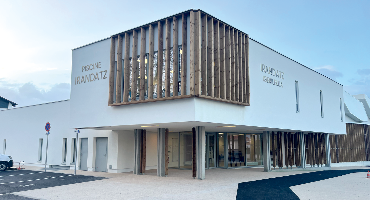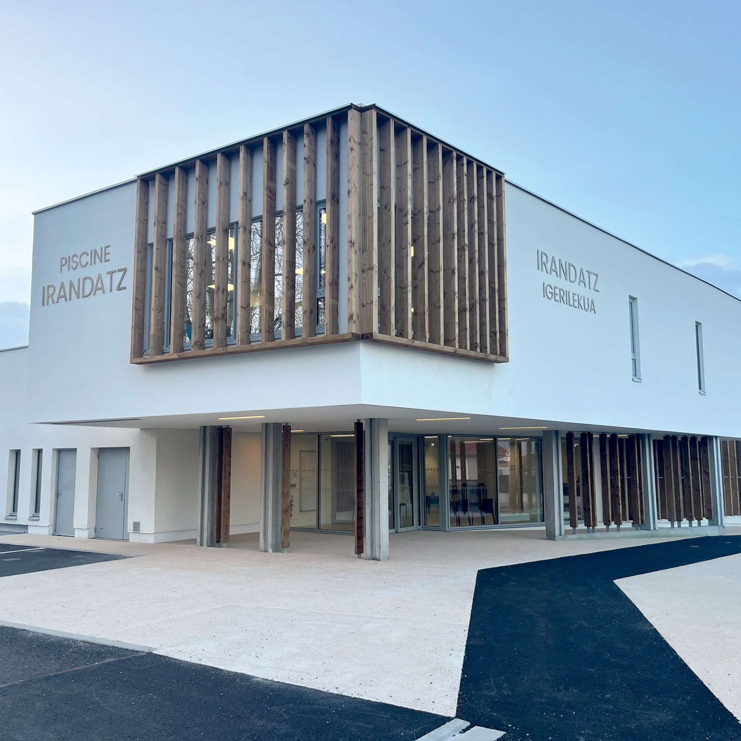 L’architecture moderne et fonctionnelle a été pensée pour s’inscrire harmonieusement dans le quartier Irandatz et le tissu urbain existant. Le bâtiment, conçu par l’Atelier Po&Po, prône l’usage du bois. Des ventelles brise-soleil sont également intégrées en façade pour maîtriser l’ensoleillement rasant.