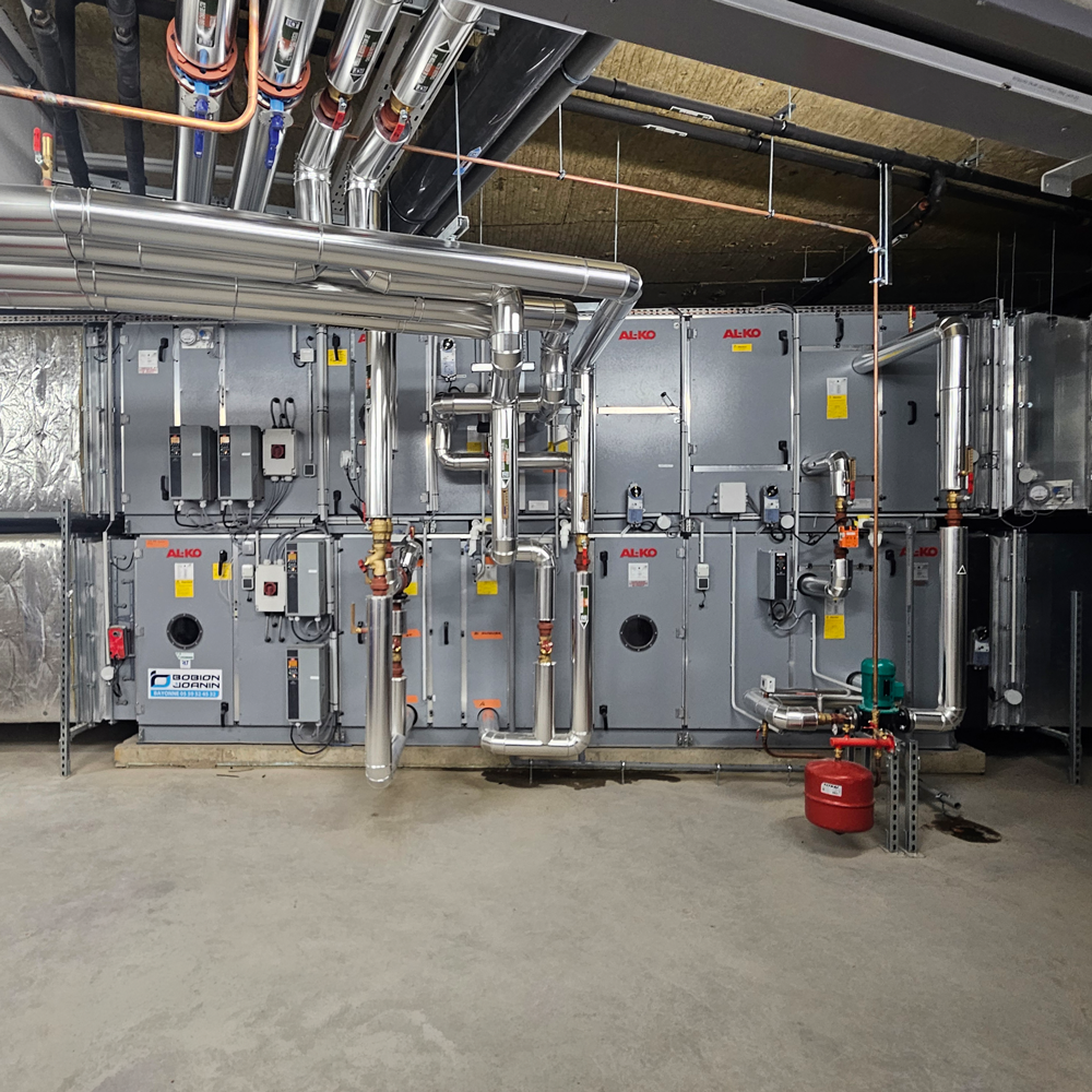 Ecoénergie a fourni les trois systèmes de traitement d’air pour traiter la halle bassins, les vestiaires et les sanitaires/douches. Par exemple, pour les 6 900 m3 de la halle bassins, c’est le modèle ECOPMP++ (déshumidification thermodynamique) qui a été retenu.